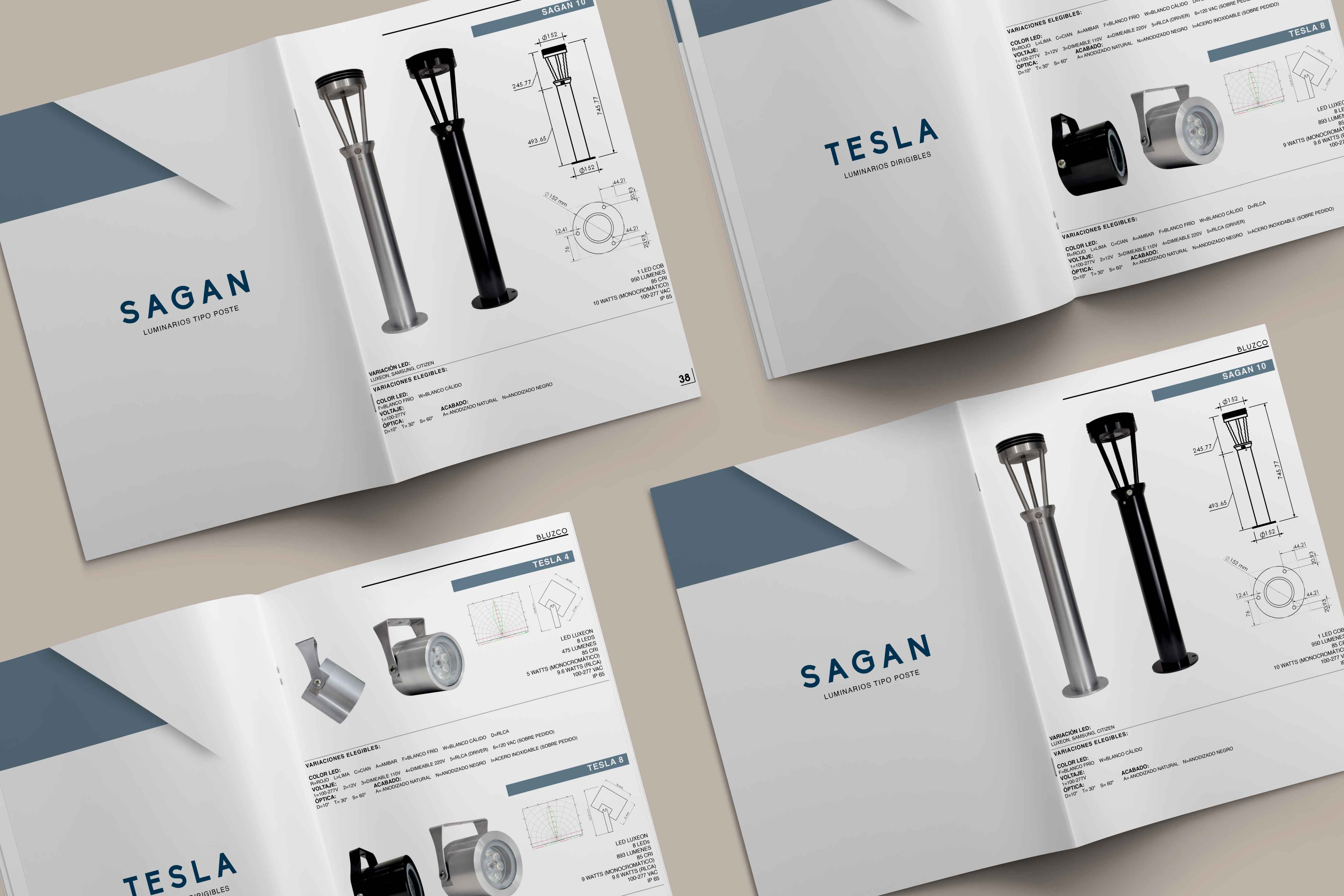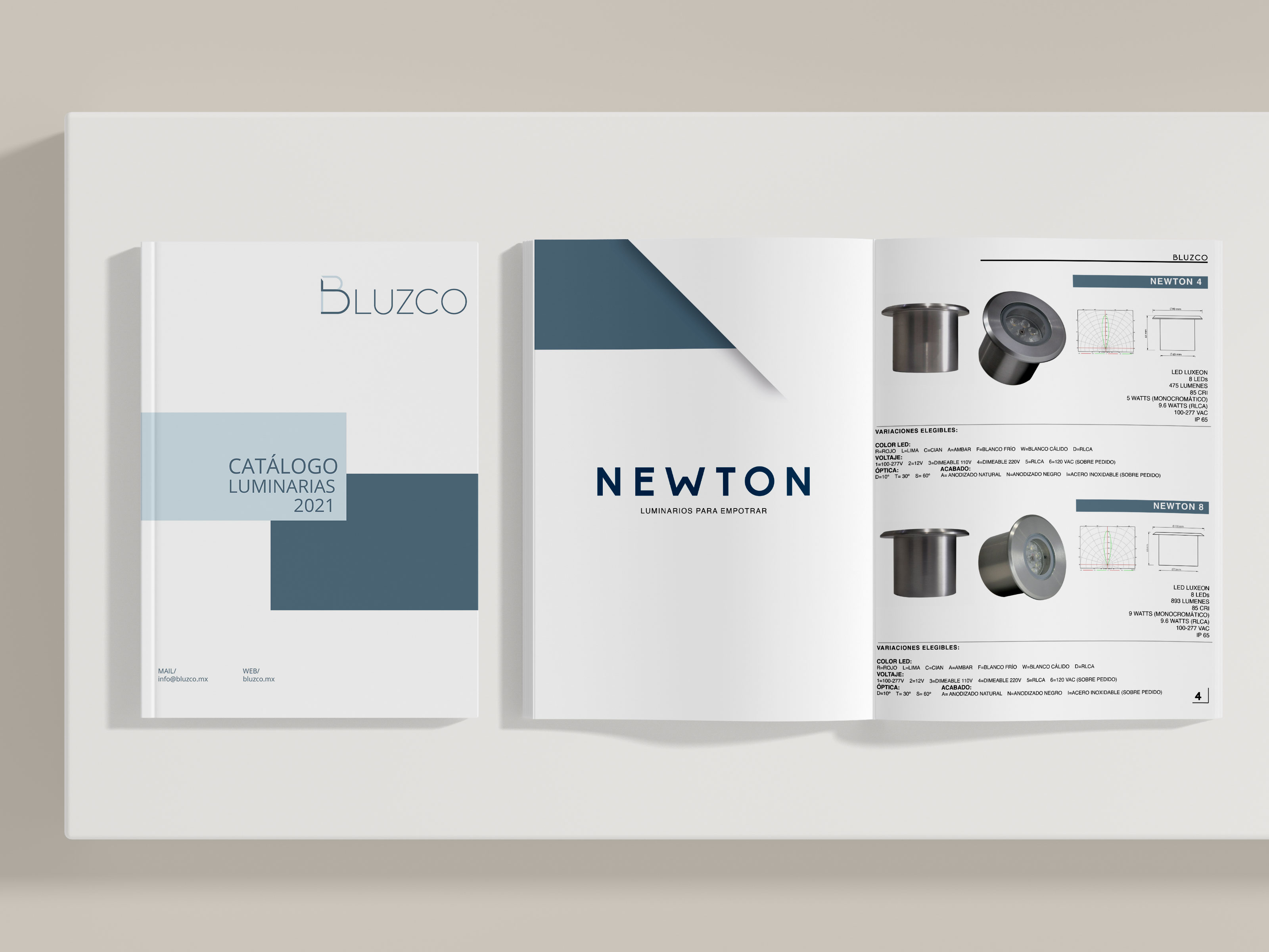 Diseño de cátalogo de productos para Bluzco, empresa dedicada a la fabricación de luminarias.