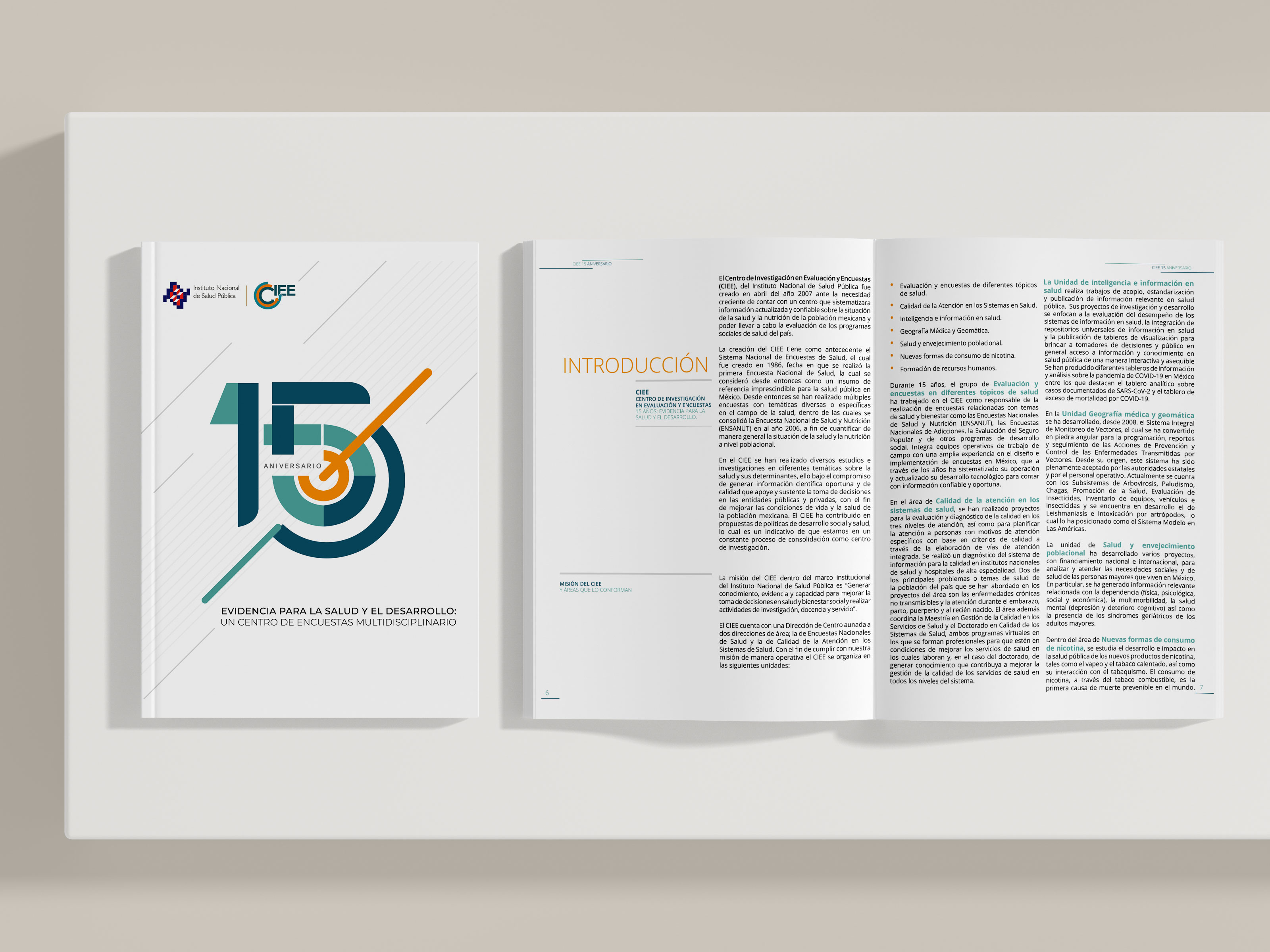 Revista conmemorativa del CIEE 15 aniversario, se trabajó el diseño editorial basado en la identidad corporativa realizada para el aniversario, respetando paleta de color y brindando un estilo fresco y limpio para fácil lectura y correcta apreciación de los gráficos.